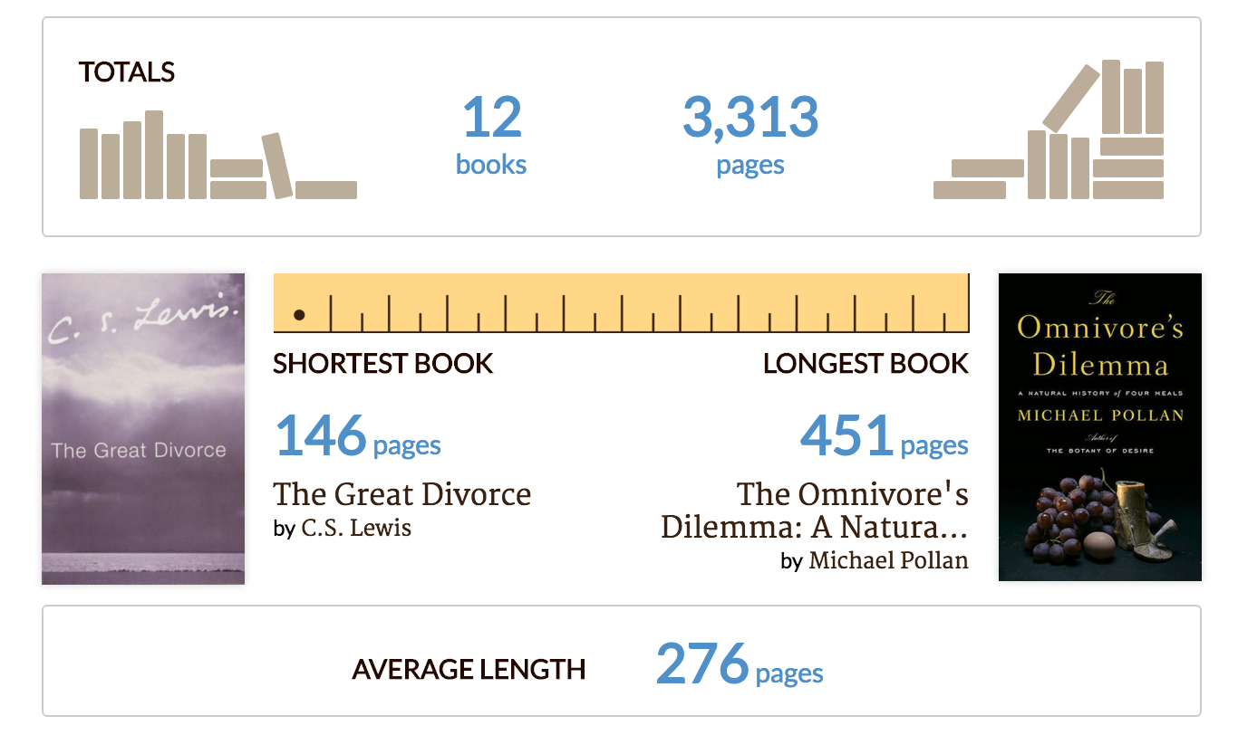 To be fair, I believe this is the most books I’ve ever read in a year. Last year I read 17 but 6 were audiobooks. I had also strived to read more fiction, which 8 of the 12 were.