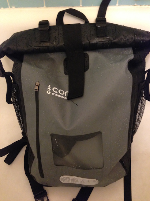 This is where the COR backpack comes in. It is essentially a hybrid between a really sturdy dry bag, like the type I camping, and a biking backpack.