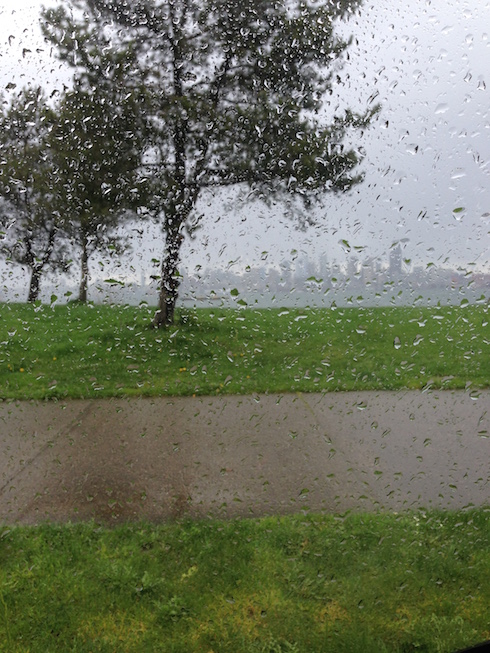 Lots of water on the ground, some big puddles and a steady trickle of Seattle’s famous light rain.
