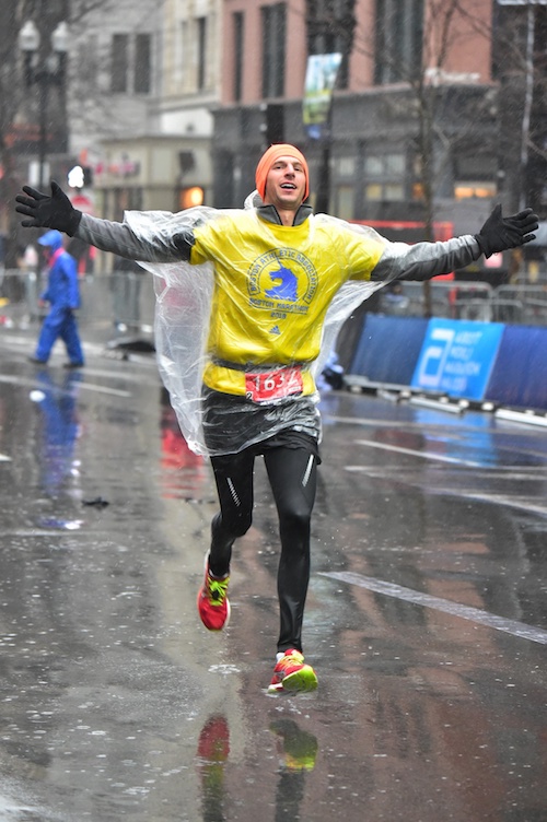 The day before the race, at packet pickup, around town and at dinner, racers from all over were talking about the weather and more importantly, what they should wear to run. The people from cold conditions were prepared. People like me from warmers spots were worrying or rushing out to buy new gear. One of the big rules of running a marathon is that you should never do anything on race day that you haven’t practiced during one of your long training runs. Don’t eat anything new, don’t wear anything new, don’t try ANYTHING new. For many of us, this Boston Marathon forced us to break that rule. We were either going to have to wear something we’d never worn before or we were going to have to run in conditions we’d never run in before without the right gear. Fun!