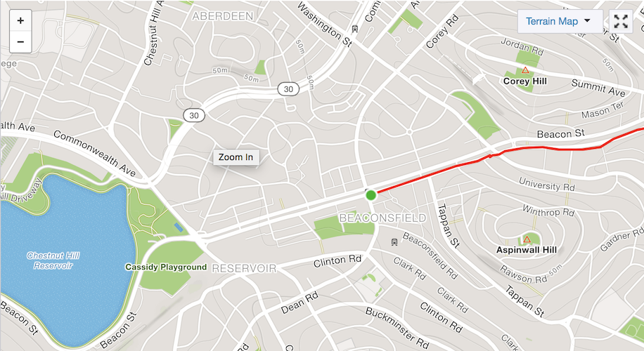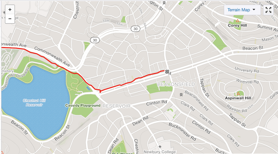 The next two miles were the second set of two hard in the pattern I’d started at mile 16. The second of which contained the dreaded heartbreak hill. I locked on a few strong runners and held on, the first hill went pretty well, my pace slowed to 6:53, but this was somewhat expected with the hill. Heartbreak hill didn’t go as well, but logging 7:17 for that mile isn’t horrible. As I climbed I realized I had shifted in modes from running where I don’t think about it to paying attention to each step. I was literally focusing on individual muscles firing to get me up the hill, usually I don’t have to get that focused until the final miles. I figured this was because of the hill though and having crested it, I was ready for an easy downhill mile to recover before the final five miles of digging to the finish.