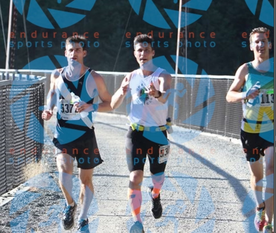 My wife grabbed a shot as I passed by them, at this point I was about 20 seconds behind Wes and 20 ahead of Jonathan. I look pretty happy & casual for a guy 20 miles in, logging low 6s.