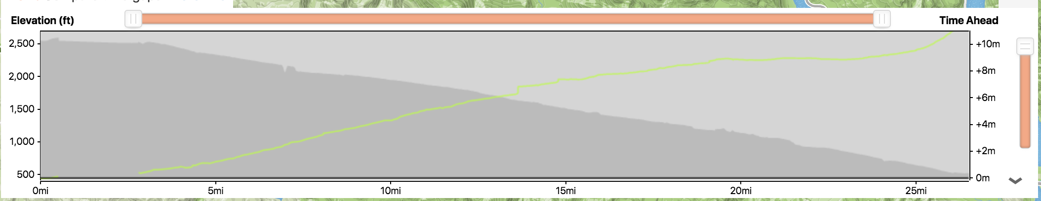 We executed well and after that stop we got back moving again, now beginning to pick up the pace. After averaging 6:30 for the first half, our next splits were 6:16, 6:15 and 6:12.