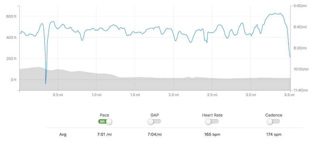 In the second part you can see what would have been a really strong finish. Around 7 through the final miles and then a nice kick with about a little less than a half mile to go.