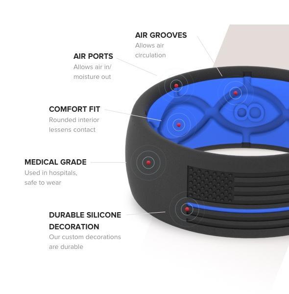Silicone rings offer similar levels of customization, but in different ways. There are a wide range of color & pattern options as well as engravings or prints.