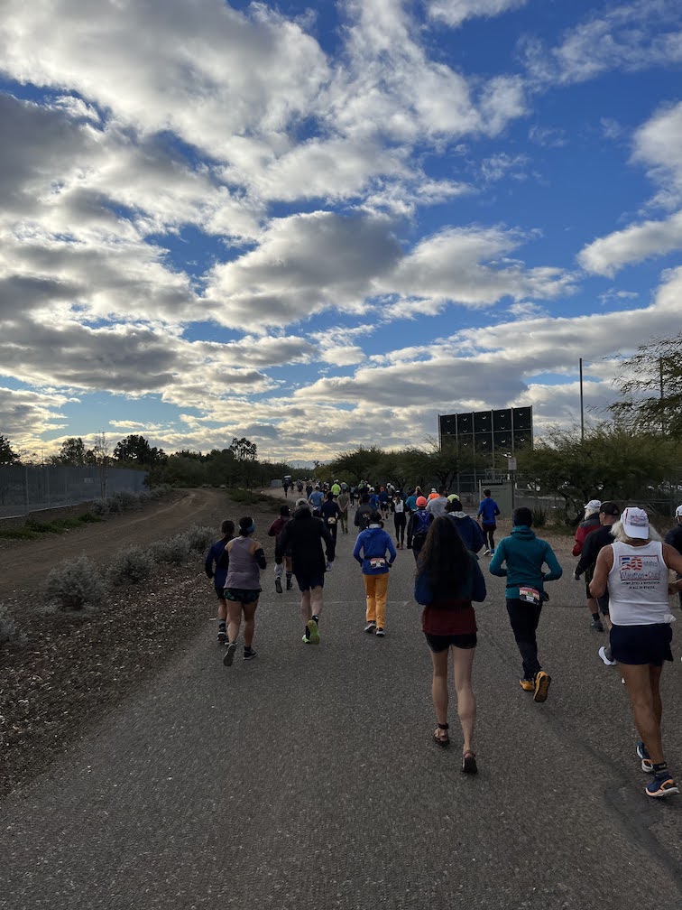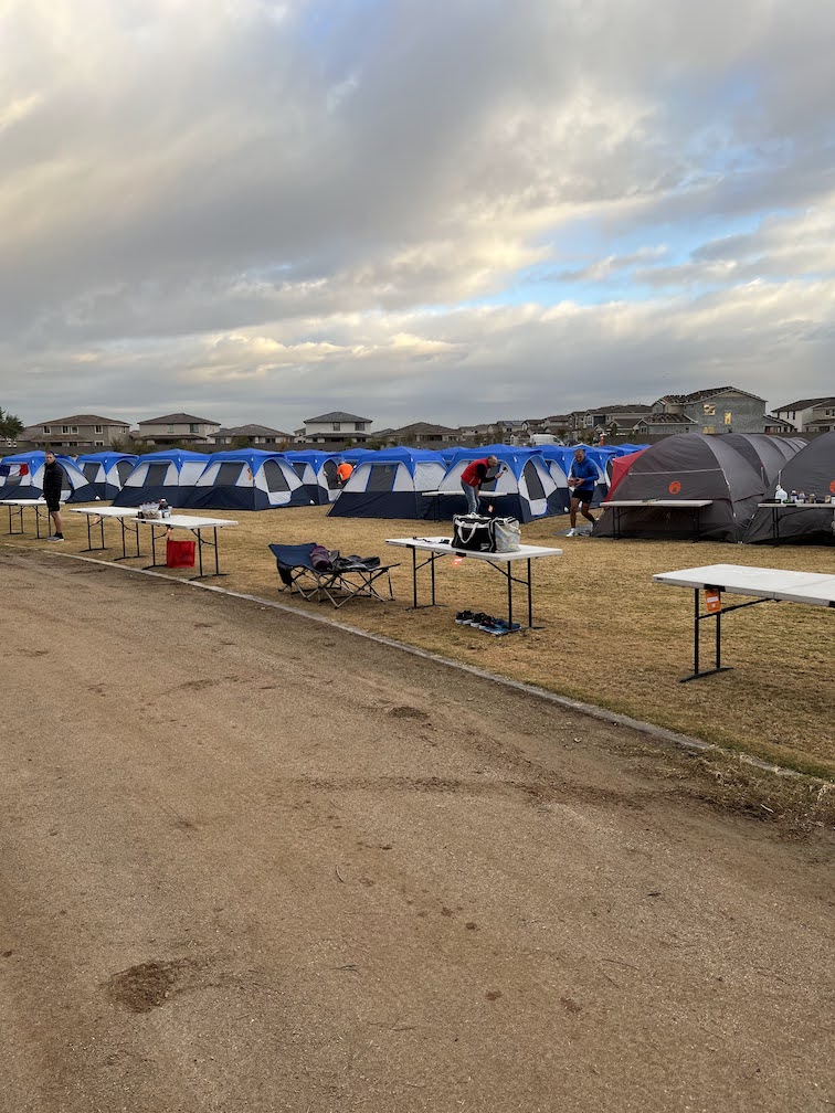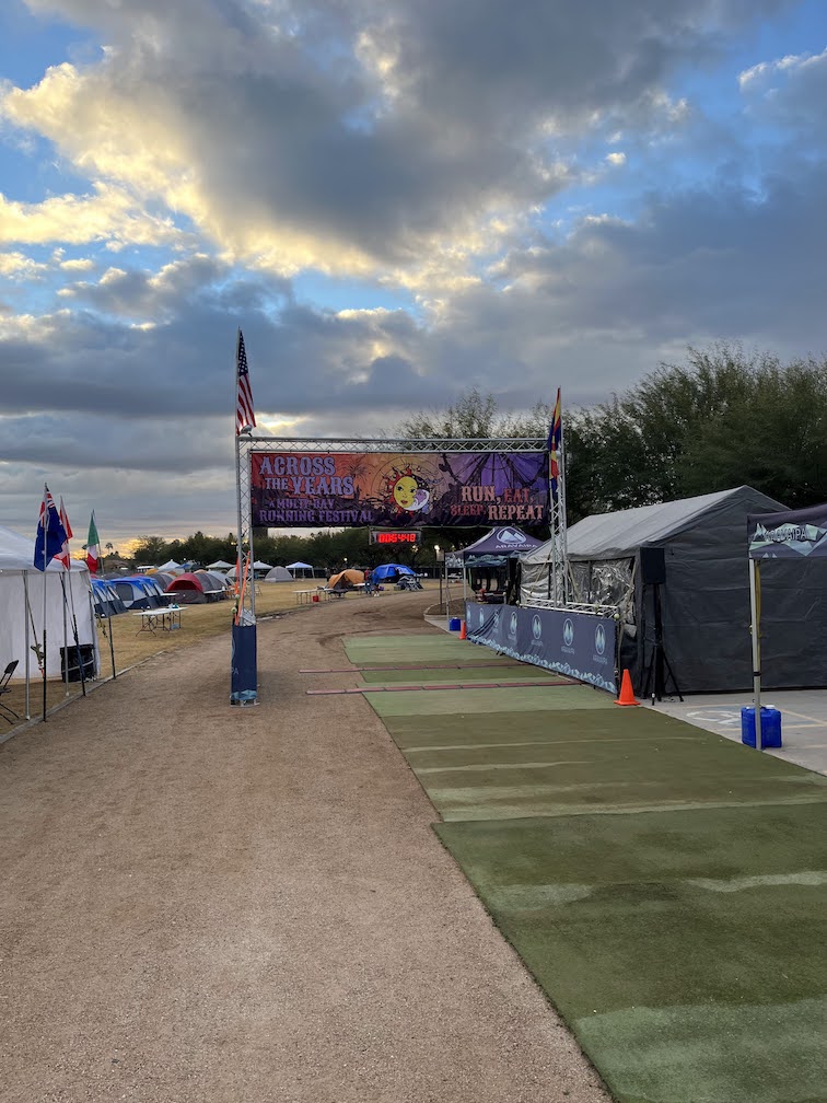 The course was a ~1 mile loop around a spring training facility for the White Sox and Dodgers. It was a gravel path and along one stretch there were tents for people doing multi-day races that needed to get sleep.