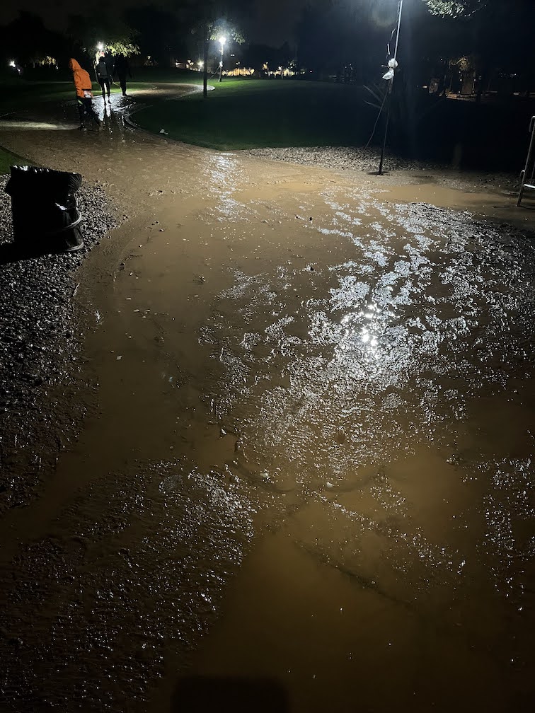 I was doing fine, but the gravel loop we were on had seen better days. The water didn’t drain off of it very well and a few hundred people were running constant loops, so we made some really good mud. Half of the course was still pretty runnable but the other half was a bit treacherous as there were ruts filled with water that you couldn’t easily see. There were some lights setup on the course and I had a headlamp too, but it was still just hard to see in the mud and low light.