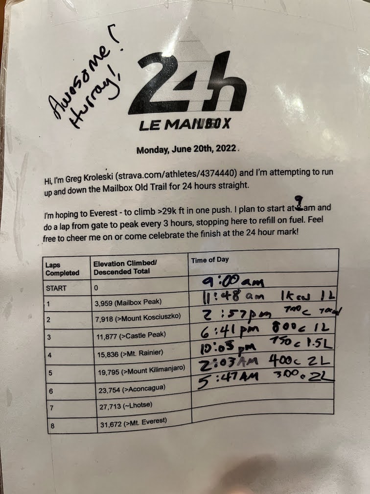 - Complete a 24 hour footrace on Mailbox Peak – ACCOMPLISHED