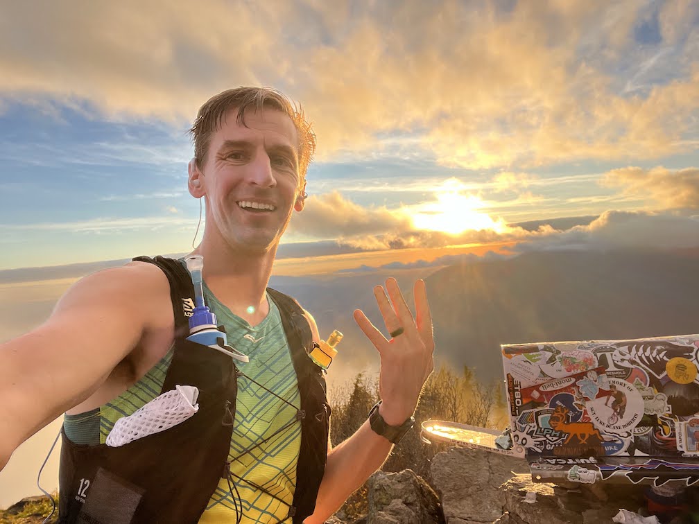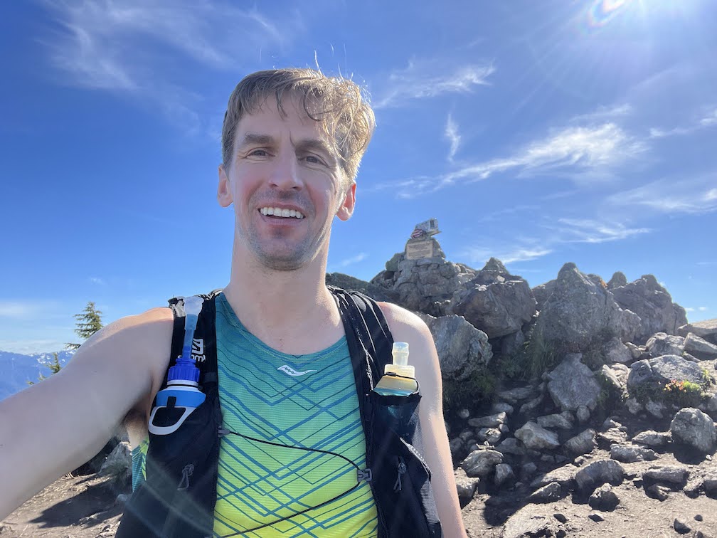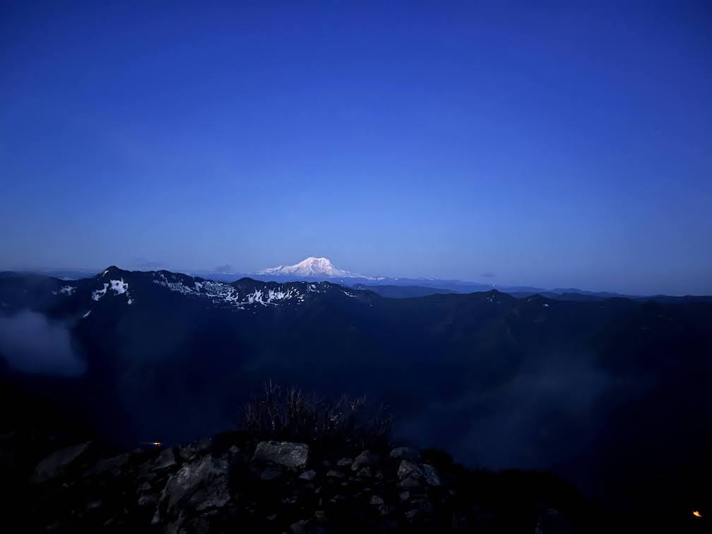 Twelve hours into my challenge, I reached the summit of Mailbox peak for the fourth time that day. I stood alone, next to the mailbox installed there as a monument, basking in the golden glow of sunset. Soft white flakes drifted down around me in my peripheral vision.