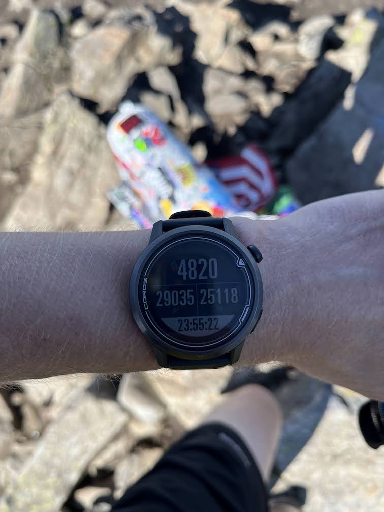 I turned back around and jogged down a bit so I could turn around and get a few more vertical feet in. I finished with four minutes and 15 seconds to spare at 29,035 ft of vertical climbing. Wow – I did it!