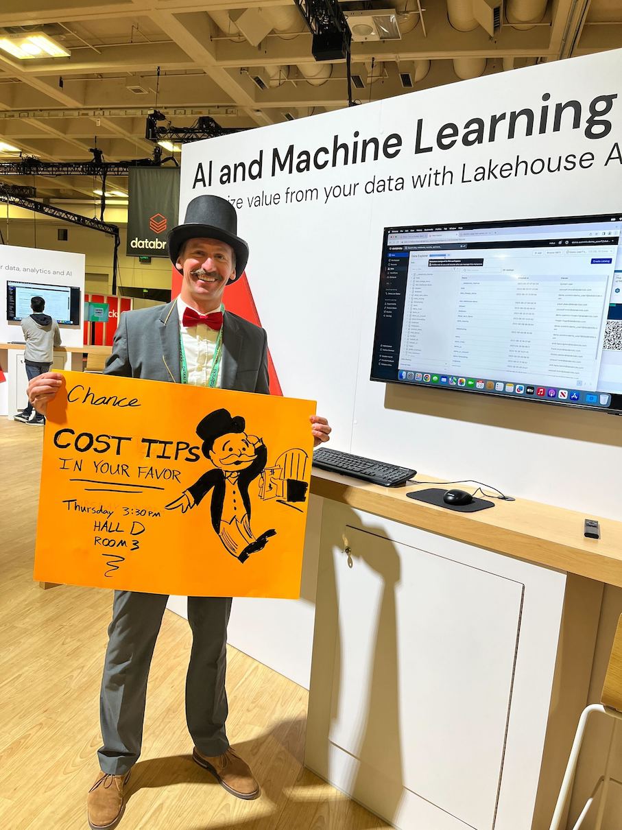 I dressed up as the Monopoly Man to promote my session on Cost Management at our Data and AI Summit. I was not fired for this, which was a relief.